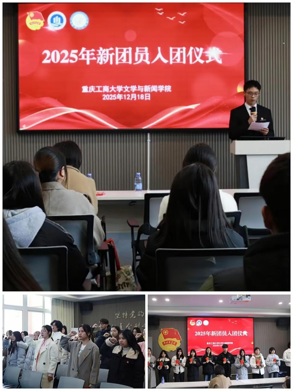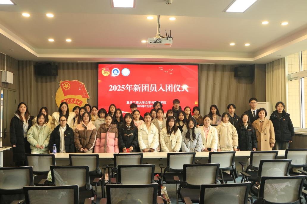 12月18日,文学与新闻学院2025年新团员入团仪式在南岸校区慧智楼90529报告厅隆重举行。学院学工办主任、分团委书记刘平及37位新发展团员共同参加本次仪式,仪式由陈乔曦同学主持。