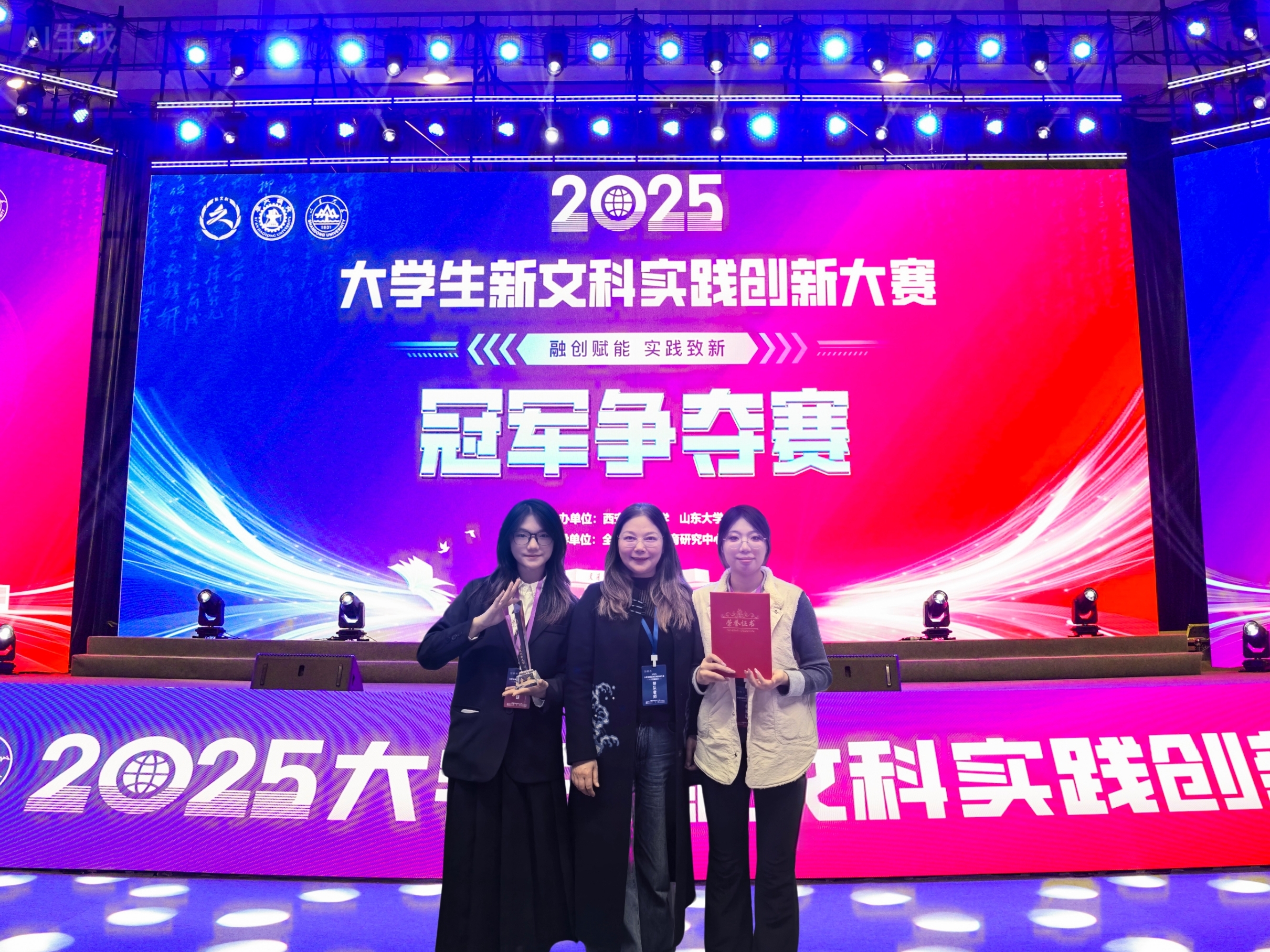 近年来,文学与新闻学院紧扣“新文科”建设要求,以跨学科融合为突破口,探索“大商科+新文科”育人新模式。通过搭建跨专业实践平台、组建复合型指导团队、对接产业真实需求,引导学生打破学科壁垒,在交叉领域锤炼创新思维与实践能力。此次金奖既是对项目团队的肯定,更是跨学院融合育人成效的生动见证。