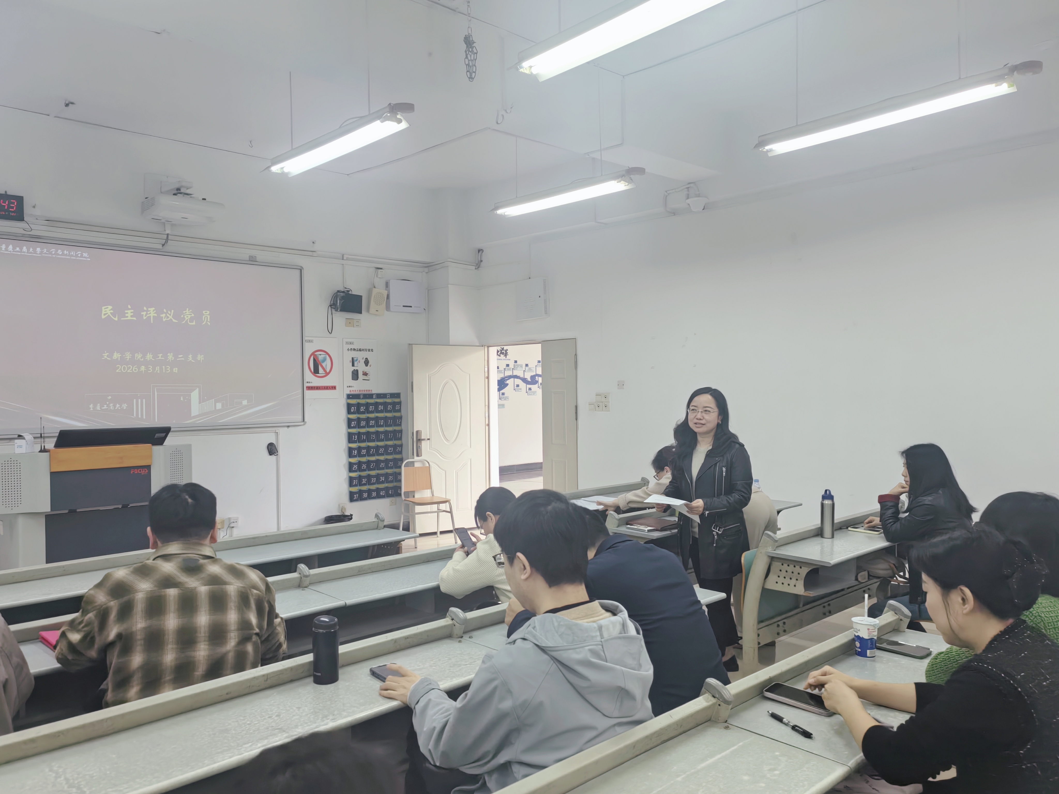 3月13日下午,我院教工第二党支部在慧智楼90625教室开展2026年3月组织生活集中学习。会议第一阶段,支部学习了组织部下发学习资料中,习近平总书记近期重要讲话和重要指示批示精神、文章精神与中央会议精神等重要内容,并开展学习贯彻党的二十届四中全会精神培训,集中学习《“十五五”时期经济社会发展的指导思想、重大原则和根本保证》,会议由支部书记廖宇翃主持并领学,党员同志们踊跃发言。