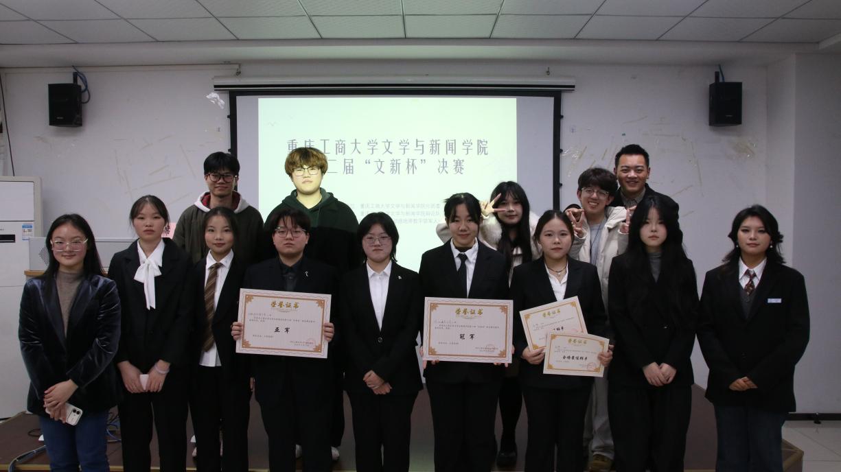 11月23日下午,重庆工商大学文学与新闻学院第二届“文新杯”决赛在南岸校区学生发展中心顺利举行。重庆工商大学校辩论队现役队长刘星宇、成员黄崧宇,机械工程学院辩论队队长王洪燈、2022届文学与新闻学院辩论队副队长姚念希担任本场比赛的评委,活动由比赛执行主席周豫主持。