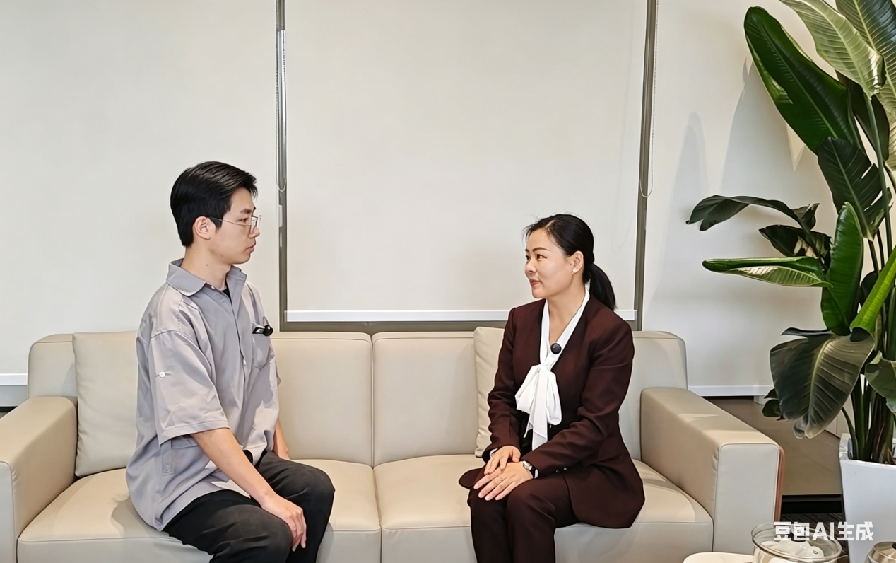 图片:学生代表(左)采访郝伟总经理(右)