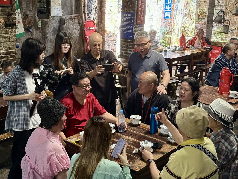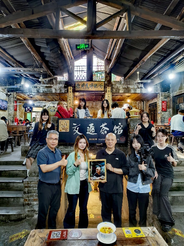 实践的核⼼在于“思政引领”。朱东教授带领学生穿梭于烟雾缭绕、茶香氤氲的茶馆之间,观察这三十九年来的沧桑巨变、体悟新时代的人间烟火与民生幸福。在这里,学生们接触到了最真实的底层人民、慕名而来的外地游客,以及捕捉流量的自媒体人。朱教授引导学生通过观察不同群体的言行举止,分析时代变迁对普通百姓生活的影响。参与学生纷纷表示,这次“走进烟火”的经历,让他们对底层普通市民的生活状态有了更深刻的了解,对摄影摄像技术有了更直观的理解,对“新闻人的初心”有了更全面的自我注解。