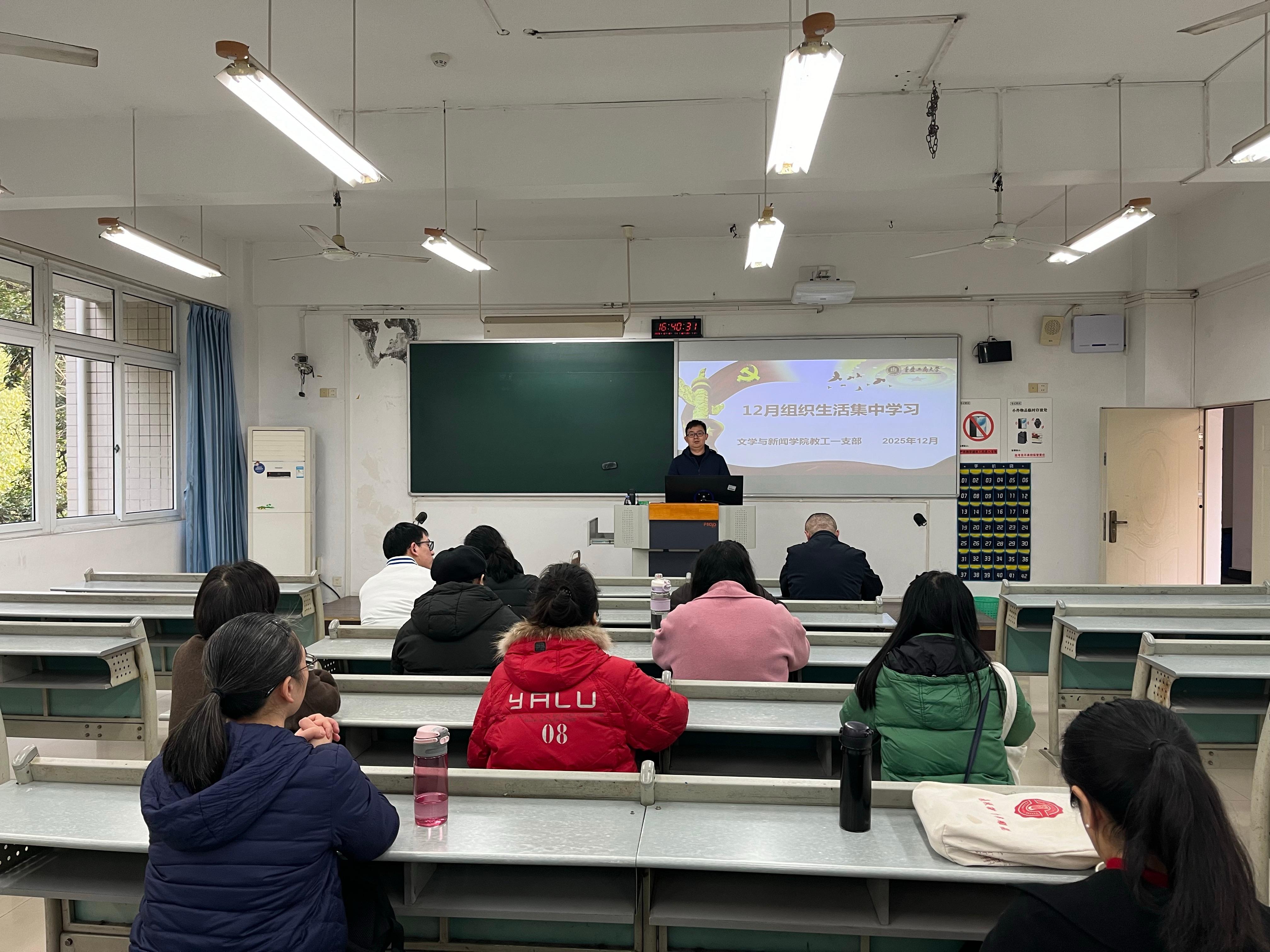 12月18日下午,我院教工第一党支部在慧智楼90525教室开展2025年12月组织生活集中学习,支部持续跟进学习了组织部下发学习资料中,习近平总书记近期重要讲话和重要指示批示精神、文章精神与中央会议精神等重要内容,会议由支部书记谈华伟主持并领学。