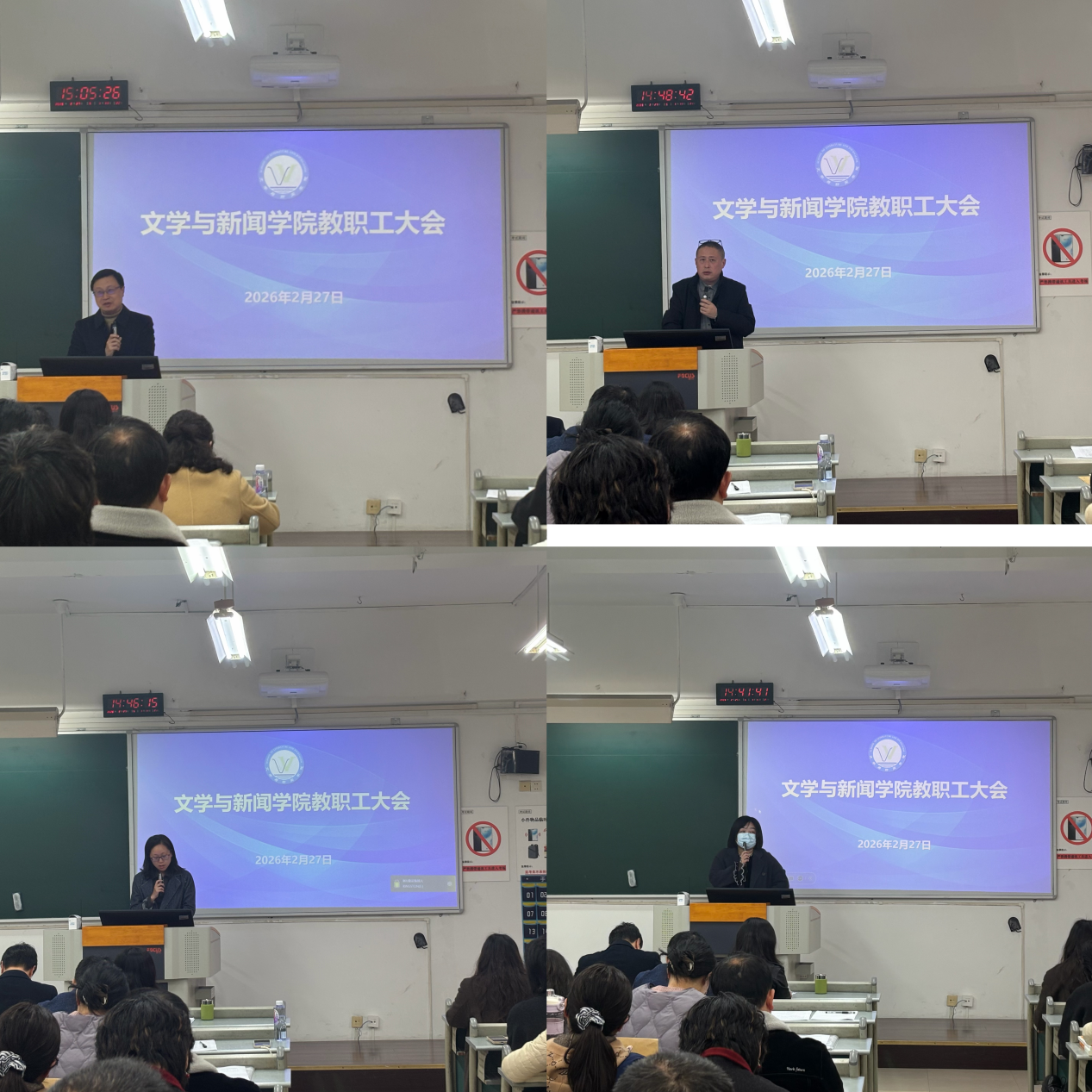 2月27日,文学与新闻学院在慧智楼90625教室召开2月教职工政治理论学习暨新学期第一次教职工大会。学院全体教职工参会,会议由党委书记潘焱主持。